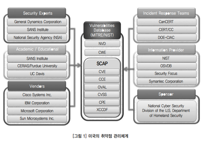 취약점 데이터베이스인 NVD(National Vulnerability Database)를 운영하고 있다. 위의 MITRE CVE와 비교했을 때, OS별로 더 상세한 정보를 제공하는 등 더 많은 정보가 있다고 한다.