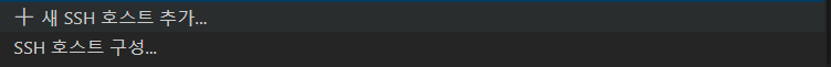 F1을 누르고 'Remote-SSH:Connection to Host' > 'SSH 호스트구성' 항목을 클릭한다.