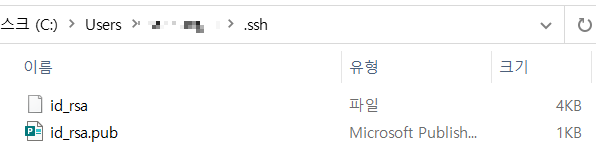 생성된 2개의 파일중 id_rsa.pub가 공개키이고 id_rsa가 개인키이다.