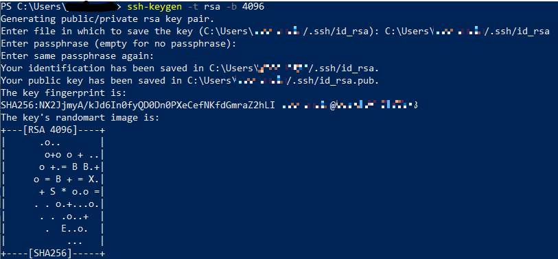 먼저, client측 PC에서 powershell을 실행시켜 ssh-keygen 명령어를 통해 rsa 키 한쌍을 생성해주었다.