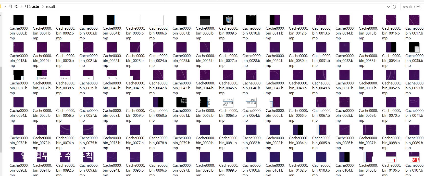 | C:\Users\JUNGIN\Downloads\bmc-tools-master\bmc-tools-master>python bmc-tools.py -d C:\Users\JUNGIN\Downloads\result -s Cache0000.bin [+++] Processing a single file: 'Cache0000.bin'. [===] Successfully exported 446 files. |
