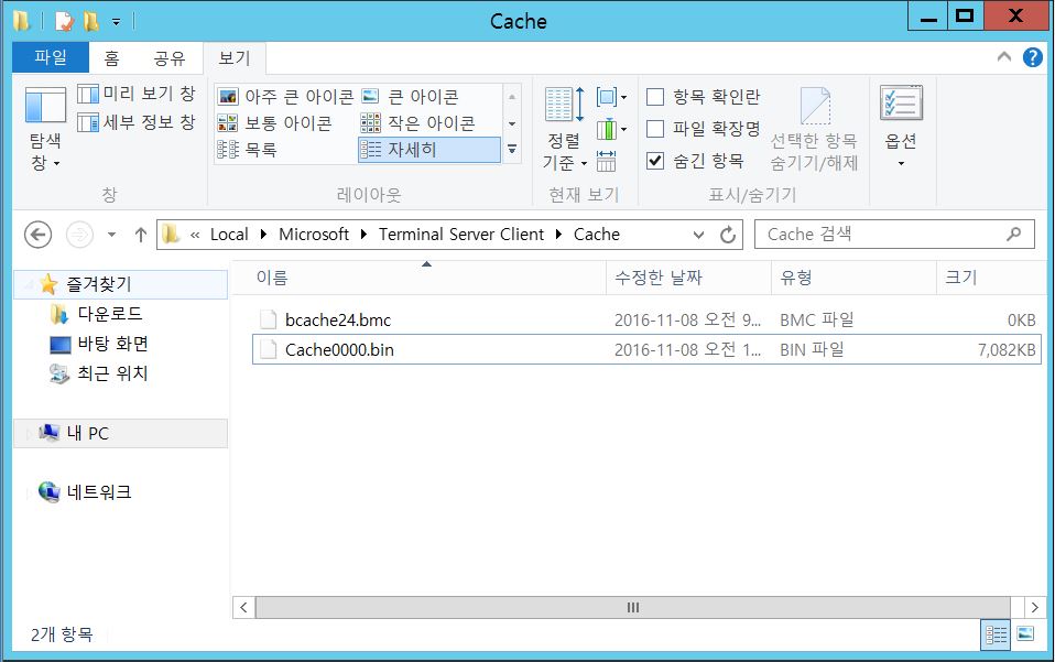 bitmap cache란, 원격접속을 할 시, 사진단위로 접속할 PC의 화면(PMS서버)를 전송해줄때 남는 캐시이다.